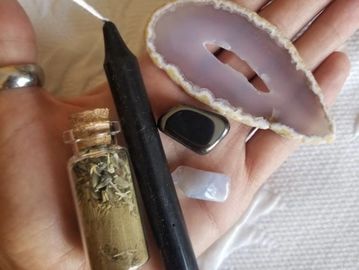 1 Black Candle- Protects against evil workings, it's binding, shapeshifting, good for protection and repels negativity.